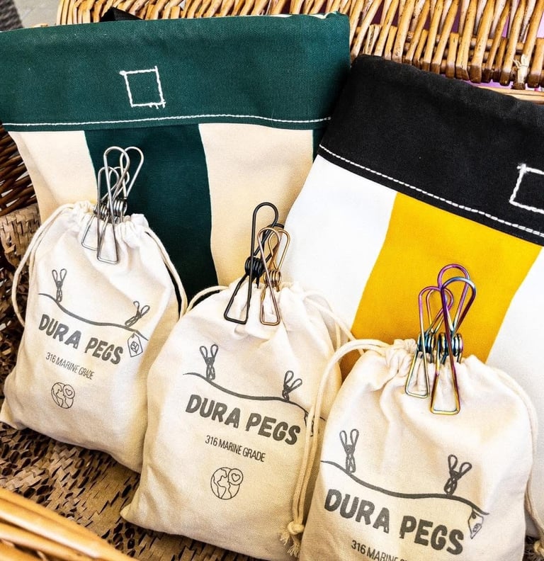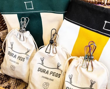 DuraPegs come in a handy cotton bag that can be re-used over and over again.